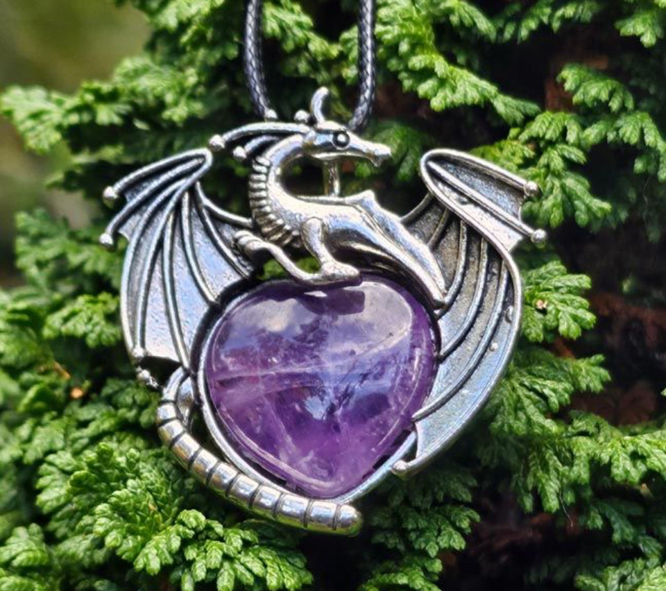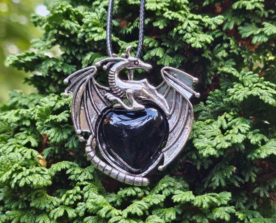 Cradled in the coils of a majestic dragon, this pendant showcases a gleaming gemstone heart—each one unique, shimmering with the elemental intensity of fire and spirit. The dragon, revered across cultures as a symbol of transformation, protection, and ancient wisdom, wraps around the stone like a cosmic sentinel, echoing the deep pulse of inner strength.